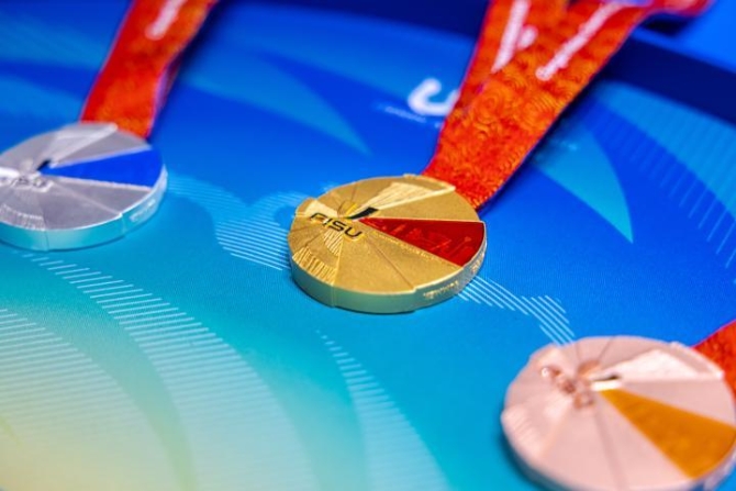 據(jù)介紹,成都大運(yùn)會(huì)獎(jiǎng)牌“蓉光”取自成都的簡(jiǎn)稱“蓉”,同時(shí)寓有“榮光”之意。整體創(chuàng)意以“五洲融合、天府文化、賽事標(biāo)識(shí)系統(tǒng)、成都成就夢(mèng)想”為核心,在展現(xiàn)體育精神、呈現(xiàn)古蜀文化、彰顯賽事名城美好愿景的同時(shí),強(qiáng)調(diào)本屆賽會(huì)特色,著重表達(dá)新時(shí)代天府文化內(nèi)涵。