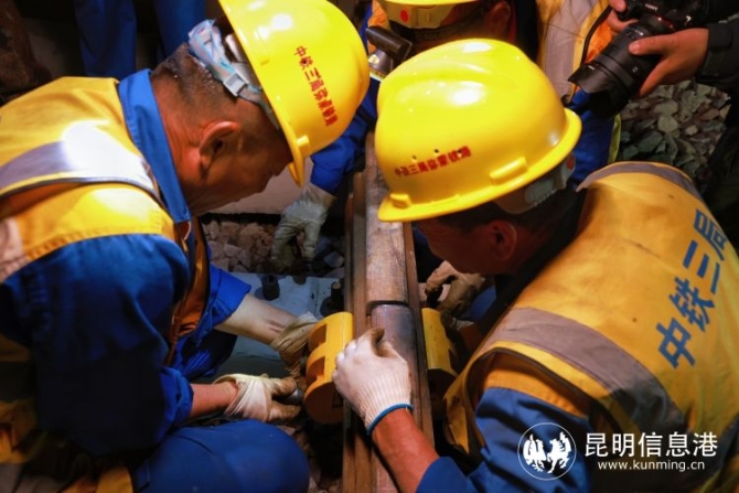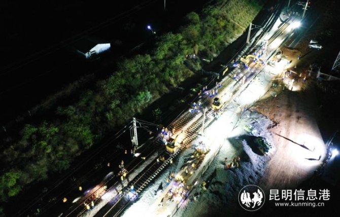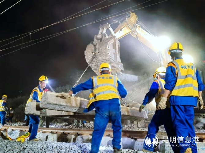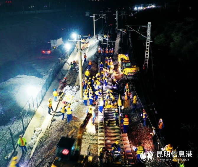 “今天晚上施工是多單位、多工種、 多工序的聯(lián)合施工, 三個龍口同時進行撥接,戰(zhàn)線長、難度大、安全風險高?!?忙碌穿梭于各施工點的王志軍說,中國鐵路昆明局集團組織中鐵三局等施工單位,結(jié)合現(xiàn)場實際,超前謀劃,制定了應急措施和針對性的實施方案,投入大型機械9臺、挖掘機12臺 ,全力攻堅會戰(zhàn)。