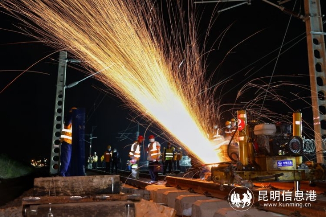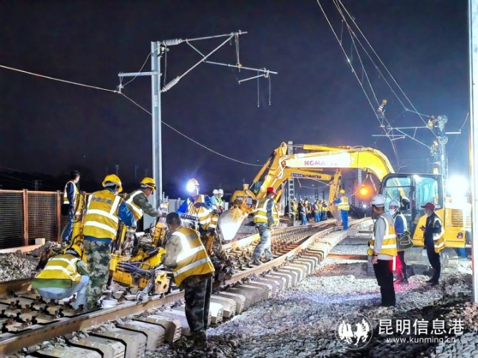 昆明信息港的 記者上官艷君 記者從中國鐵路昆明局集團獲悉,3月19日4時許,經(jīng)過800多名施工人員6個小時的深夜鏖戰(zhàn),云南省紅河州彌勒至蒙自高鐵最大車站紅河站的4公里線路改道順利完成,標志著中越國際通道昆(明)玉(溪)河(口)鐵路成功引入紅河站普速場,為彌蒙高鐵全線聯(lián)調(diào)聯(lián)試和年內(nèi)建成通車創(chuàng)造了有利條件。
