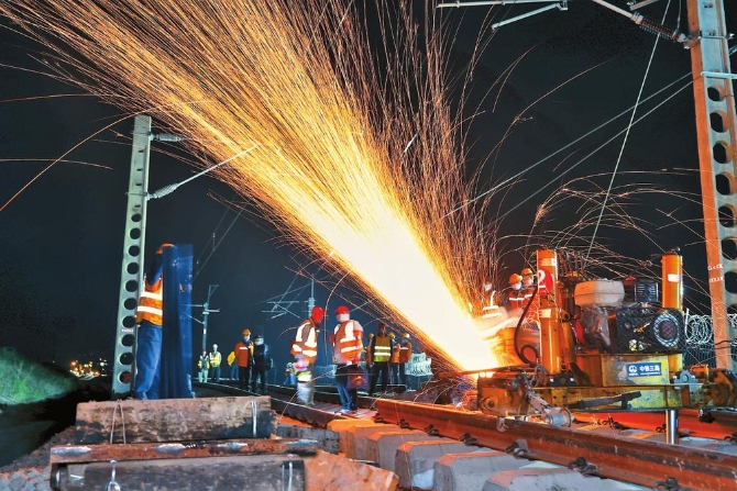 中鐵三局彌蒙高鐵現(xiàn)場施工負(fù)責(zé)人王志軍介紹,由于改道線路每天都要承擔(dān)客運和貨運任務(wù),為不影響正常運輸,施工作業(yè)只能在夜間動車停止運行后進(jìn)行。