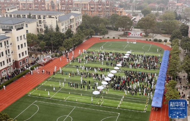 3月19日拍攝的設(shè)在上??党切^(qū)內(nèi)的檢測現(xiàn)場——上海師范大學(xué)康城實驗學(xué)校。
