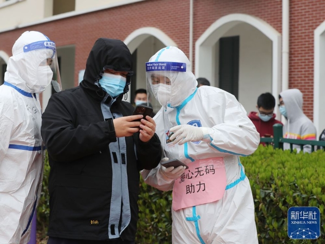 3月19日,志愿者幫助居民進(jìn)行檢測條碼登記。