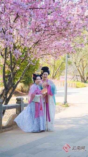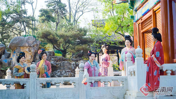 逐春分,探春意。在昆明世博園盆景園內(nèi),打造了一場“中國傳統(tǒng)文化二十四節(jié)氣系列活動之春分·裙幄宴”。三五好友,著唐制服飾,一盞清茶,一席果宴,在春風(fēng)里,于綠野間,祈愿待到疫散花開時,相約春城百花艷。