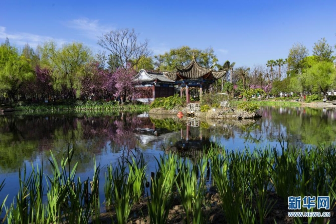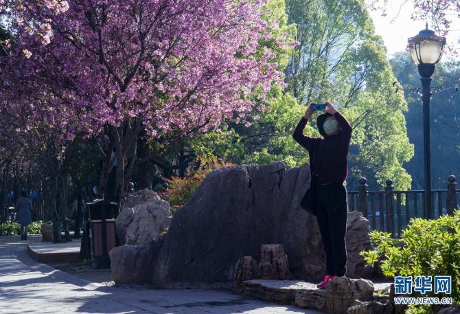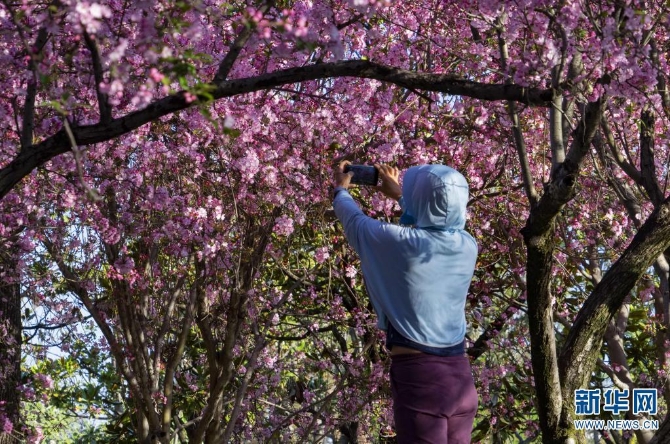 近日,云南昆明西華園內(nèi)海棠花競相綻放,整個公園春意融融,美不勝收。新華網(wǎng)發(fā)(鄭益3月13日攝影報道)