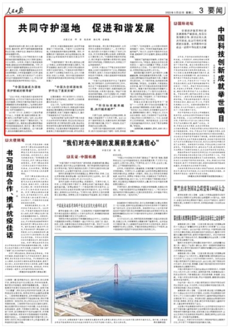 “中國為全球濕地保護(hù)作出了重要貢獻(xiàn)”