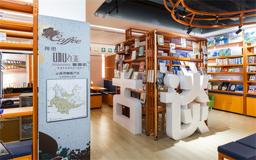 圖書館入口掛著一幅用云花、云茶、云咖還原的云南地圖。館內(nèi)則展示著中國科學院昆明植物研究院科技入滇項目研發(fā)的膠囊咖啡及滇越鐵路文創(chuàng)商品、云南永生花等云南好物。下班了、游累了,社區(qū)居民、游客可以到圖書館里歇歇腳,看本好書,喝杯優(yōu)質(zhì)的云南咖啡、云茶。作為云南省圖書館旅游圖書分館,未來,云南旅游圖書館將舉行讀書分享等活動。