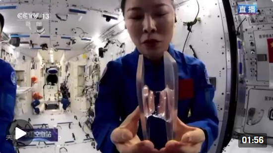 在“天宮課堂”液橋演示實(shí)驗(yàn)中,水在表面張力作用下將兩個(gè)塑料板連接起來,在太空可用液體搭一座橋。戳視頻↓↓↓