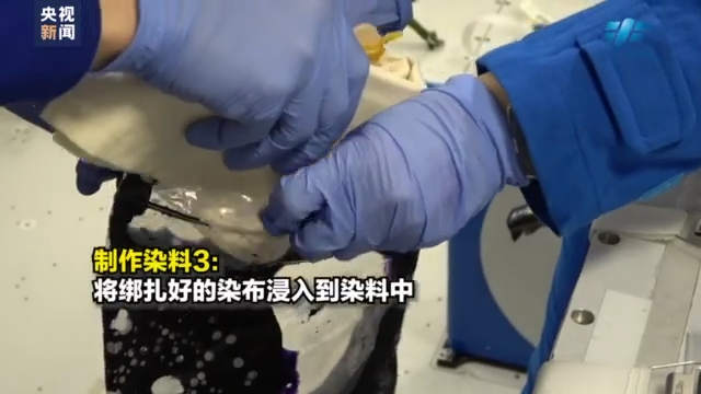 航天員 王亞平:在這里我要向大家介紹一項我們的非物質(zhì)文化遺產(chǎn)——扎染。扎染又稱為扎纈、絞纈,是傳統(tǒng)而獨特的染色工藝,一般來說分為扎結(jié)和染色兩個部分。