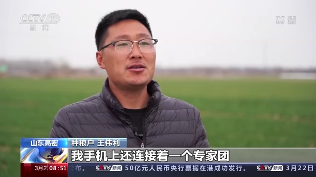 山東高密市種糧戶 王偉利:現在不是我一個人在種地,我手機上還連接著一個專家團。根據他們的指導,在冷空氣來臨之前,我早就給小麥澆上了水,土地沒有裂縫,冷空氣就進不去。