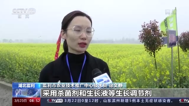 監(jiān)利市農業(yè)技術推廣中心技術員 徐文靜:采用殺菌劑和生長液等生長調節(jié)劑,以達到促進油菜正常生長,防菌核病、防早衰、防花不實和防高溫逼熟的一個效果,以保證油菜的豐產。