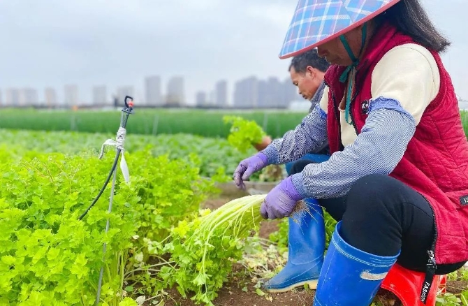 2月10日,福建省漳州市詔安縣橋東鎮(zhèn)東沈村種植戶采收芹菜。圖 沈坤玉