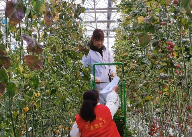 2月10日,河南省鶴壁市氣象服務(wù)人員調(diào)查荷蘭小番茄、油菜、黃瓜等長勢。圖 張俊楠 趙輝