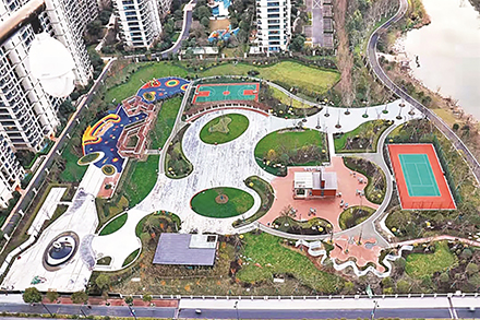 進入綠地公園內(nèi),首先映入眼簾的是采用灰白相間色調(diào)鋪裝的地面,生態(tài)石、雨花石、灰色塑膠游步道等風(fēng)格變換卻又渾然一體,做到一處一景、層次分明。此外,場地內(nèi)健身娛樂設(shè)施與管理服務(wù)設(shè)施配套齊全,各個功能空間有機融合,為市民提供了休閑娛樂的好去處。