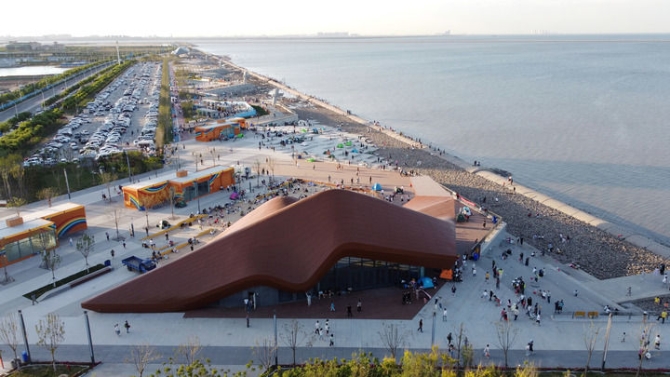 沿著位于天津市濱海新區(qū)東疆港區(qū)海岸線漫步,一只面朝大海的“貝殼”、一座沿海岸線起伏的“沙丘”和一架巨大的“紙飛機(jī)”映入眼簾,這里是天津市東疆親海公園。春回大地,海風(fēng)習(xí)習(xí),來這里游玩看海的市民絡(luò)繹不絕。