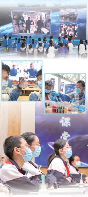圖②:安徽省六安市,同學(xué)們觀看“天宮課堂”,同時(shí)在做科學(xué)實(shí)驗(yàn)。