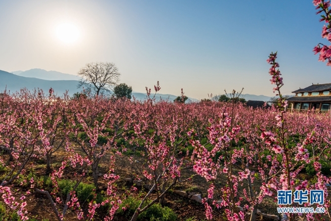 洱源縣茈碧湖鎮(zhèn)海口村委會官營村,桃花競相綻放(攝于3月18日)。新華網(wǎng)發(fā)(羅新才/攝)