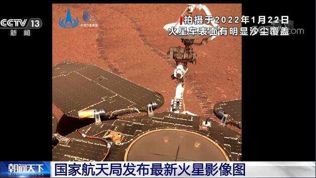 “祝融號”火星車也從火星表面?zhèn)骰刈耘恼眨啾葎倓傊憰r拍的照片,可以看出火星車表面已積累了一層薄薄的沙塵。同時,通過火星車的遙測信息判斷,太陽翼的發(fā)電效率受到一定影響,但能源仍然充足。為了應對沙塵覆蓋,火星車太陽翼進行了特殊設計,可采取多種措施應對沙塵引起的發(fā)電效率下降問題,目前尚無需使用,當前能源狀態(tài)足以支持火星車繼續(xù)行駛并開展探測。