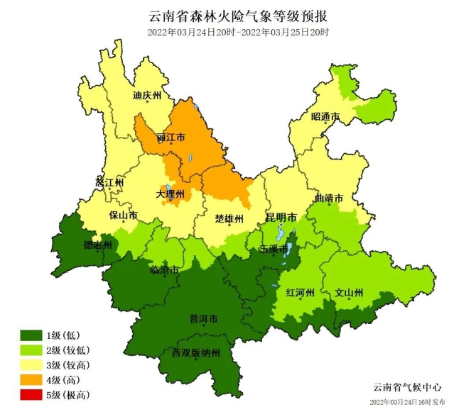 3月25日,降雨減弱,滇西南有強(qiáng)對(duì)流天氣,滇西北、滇中、滇東森林火險(xiǎn)氣象等級(jí)較高。具體預(yù)報(bào)如下: