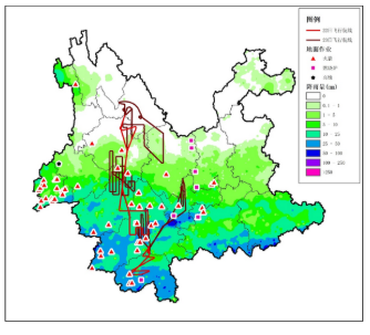 (圖中紅色和紫色圖標(biāo)為地面作業(yè),折線為飛行軌跡)