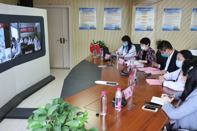 專家團(tuán)隊(duì)在貴州省人民醫(yī)院遠(yuǎn)程會(huì)診中心與全省34家醫(yī)聯(lián)體醫(yī)院進(jìn)行“疫情之下,共話抗癌防癌”的討論(2020年4月16日攝)。新華社記者 歐東衢 攝