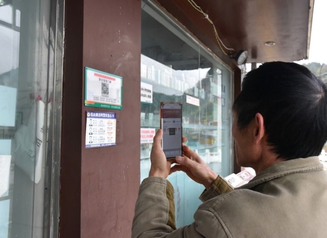 貴州余慶縣花山苗族鄉(xiāng)花山村村民魏廷福展示用手機(jī)掃碼“黔農(nóng)智慧門牌”進(jìn)入到相應(yīng)的政務(wù)服務(wù)頁(yè)面(2月18日攝)。新華社記者 李凡 攝