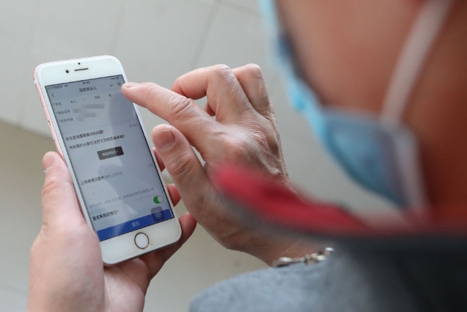 患者家屬在貴州省人民醫(yī)院通過“云診療”系統(tǒng)在線提問(2020年4月16日攝)。新華社記者 歐東衢 攝