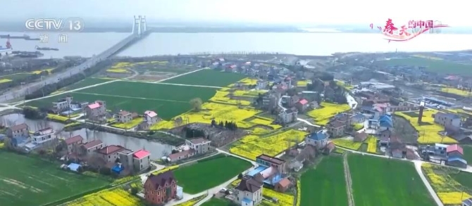 麥田披綠,菜花盛放。在江蘇南通通州區(qū)的開沙村,這里春風(fēng)蕩漾,岸青柳綠,從空中俯瞰,麥苗碧綠鮮亮,油菜花熱烈燦爛,中間點(diǎn)綴著錯(cuò)落有致的民居。