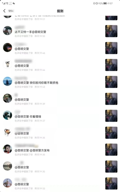 “春城好網(wǎng)民”@昆明交警 截圖