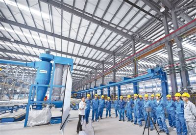 黨員志愿者走進浙江省湖州市棟梁新材有限公司車間,在企業(yè)員工休息時為他們宣講紅色革命故事。新華社記者 徐昱攝