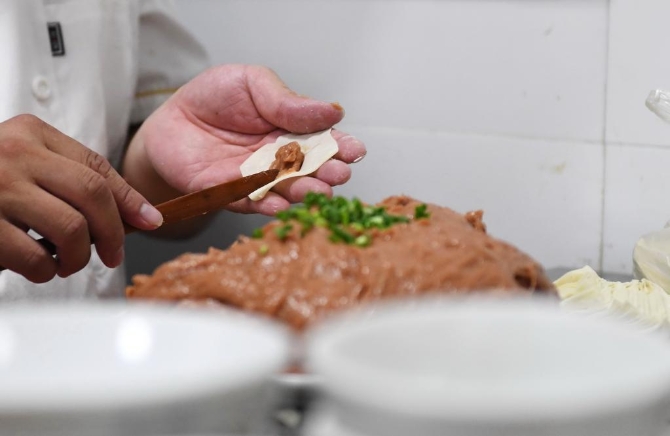 “以前手打三到四斤肉餡,要50多分鐘,現(xiàn)在用機(jī)器打餡,十分鐘就能完成,既提高了效率,也保證了肉餡的新鮮度和韌勁?!蓖跏I說(shuō)。