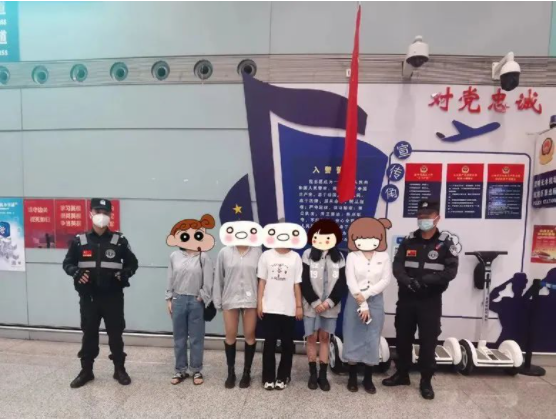 23時30分許,經(jīng)過近2小時的奔波,攔截營救小組抵達(dá)昆明長水機(jī)場,在機(jī)場派出所的鼎力相助下,成功在登機(jī)口將正在過安檢的小白、小龍、小施、小熊及已過安檢的小謝等5人及時攔截。