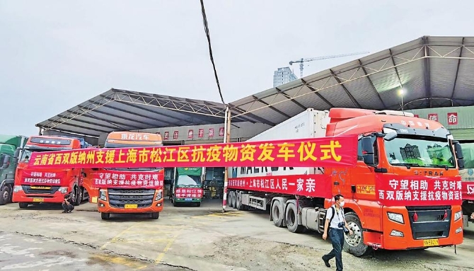 目前上海疫情防控形勢嚴峻,多年來對口幫扶西雙版納傣族自治州的上海市松江區(qū)正處于抗擊疫情的緊要關(guān)頭,上海的安危冷暖時刻牽動著千里之外西雙版納各民族干部群眾的心。為此,西雙版納州委、州政府大力倡導全州上下與上海一道共克時艱、同心抗疫,得到了社會各界和愛心企業(yè)的積極響應,兩天時間內(nèi)就籌集到了首批價值121萬余元的生活物資。目前,西雙版納社會各界和愛心企業(yè)還在源源不斷地向上海捐贈愛心物資。(云南日報 記者戴振華)