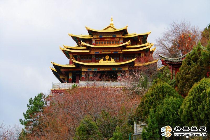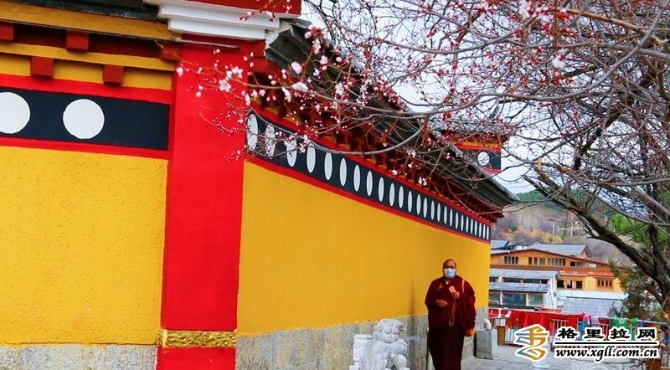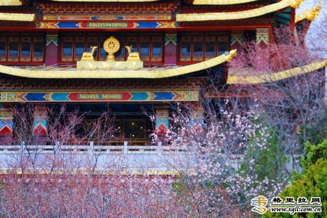 廟宇、轉(zhuǎn)經(jīng)筒和零星點(diǎn)綴在山間的山桃花遙相呼應(yīng)