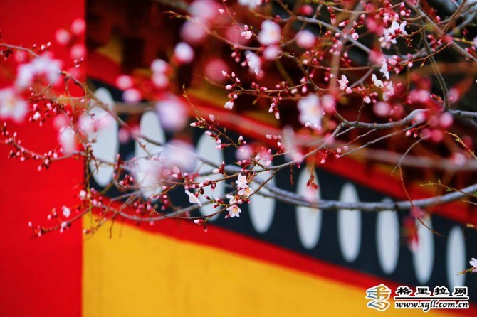 只見寺廟黃墻灰瓦間