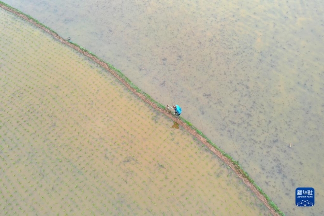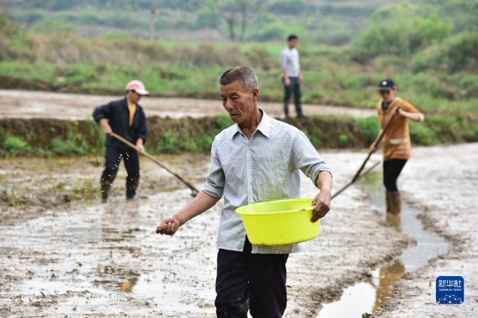3月30日,湖南省郴州市嘉禾縣珠泉鎮(zhèn)茂林村,村民在田間撒播早稻種子。清明將至,各地農(nóng)民忙著春耕勞作,田間地頭一派忙碌景象。新華社發(fā)(黃春濤 攝)