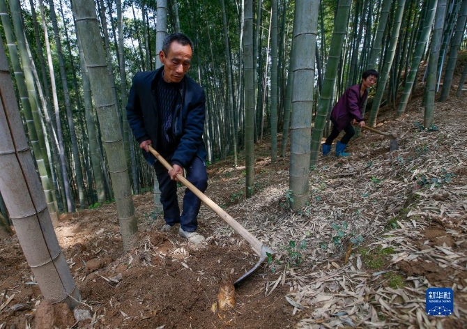 3月30日,在安徽省黃山市歙縣徽城鎮(zhèn)問(wèn)政村,村民在竹林里挖筍。清明將至,各地農(nóng)民忙著春耕勞作,田間地頭一派忙碌景象。新華社發(fā)(施亞磊 攝)