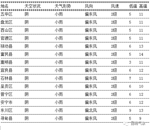 昆明主城區(qū)未來24小時(shí)各縣市天氣預(yù)報(bào)
