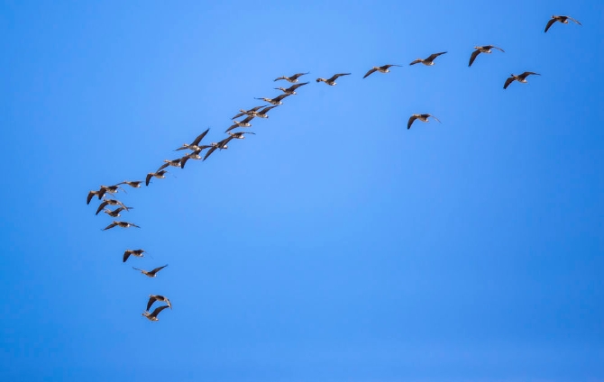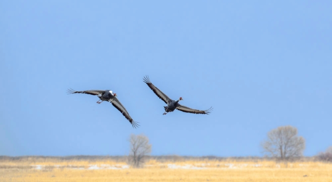 3月28日,在七星河國(guó)家級(jí)自然保護(hù)區(qū),候鳥(niǎo)在天空中翱翔。新華社發(fā)(梁峰洵攝)