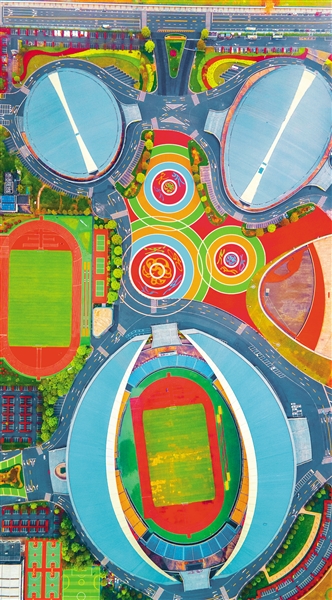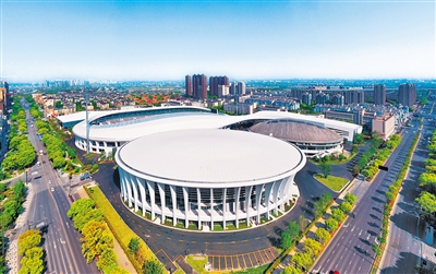 俯瞰杭州市亞運(yùn)會金華賽區(qū)場館。金華市有杭州亞運(yùn)會三個比賽場館、四個訓(xùn)練場館和運(yùn)動員分村,全部通過亞組委賽事功能驗(yàn)收。胡肖飛攝(中經(jīng)視覺)
