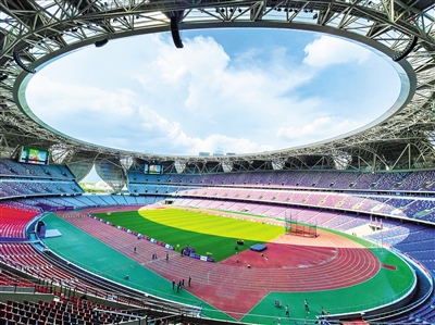 杭州市黃龍?bào)w育中心從2019年12月起實(shí)施場館全面提升改造,系集體育比賽、健身娛樂、餐飲住宿等于一體的多功能場所,是2022年杭州亞運(yùn)會的比賽場地之一。龍 巍攝(中經(jīng)視覺)