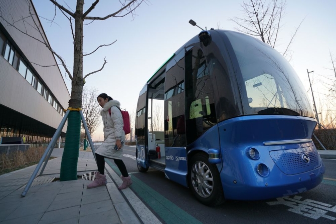 乘客在市民服務(wù)中心體驗(yàn)無人駕駛車