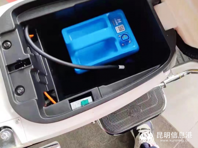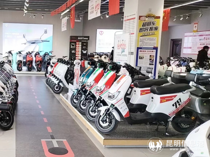 昆明臺鈴電動車珥季路旗艦店里臺鈴與小哈換電合作推出的換電車