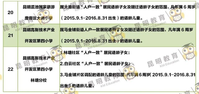 年滿6周歲(即2016年8月31日以前出生、含8月31日)昆明市主城區(qū)戶口的適齡兒童。