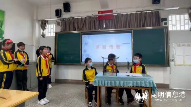 近日,昆明市盤龍區(qū)拓東第一小學(xué)五年級(jí)2班的孩子們?cè)谡Z文老師任香怡的指導(dǎo)下,化身為課本中的人物,上演了別有一番滋味的“名著首映禮”。一場(chǎng)場(chǎng)“童趣”版劇目精彩“上映”。