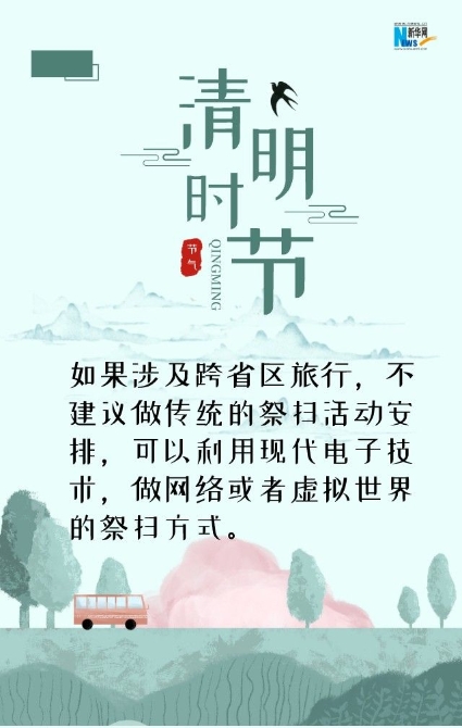 清明時(shí)節(jié)也是大家集中祭掃的時(shí)期。對(duì)此,吳尊友提示:如果涉及跨省區(qū)旅行,不建議做傳統(tǒng)的祭掃活動(dòng)安排,可以利用現(xiàn)代電子技術(shù),做網(wǎng)絡(luò)或者虛擬世界的祭掃方式。