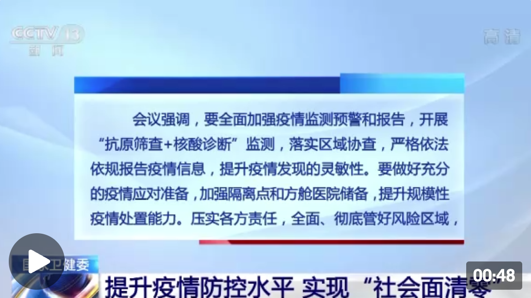 國家衛(wèi)生健康委昨天(4月1日)召開全國衛(wèi)生健康系統(tǒng)新冠肺炎疫情防控工作電視電話會(huì)議,強(qiáng)調(diào)要全面提升疫情防控水平,確保如期實(shí)現(xiàn)“社會(huì)面清零”目標(biāo)。