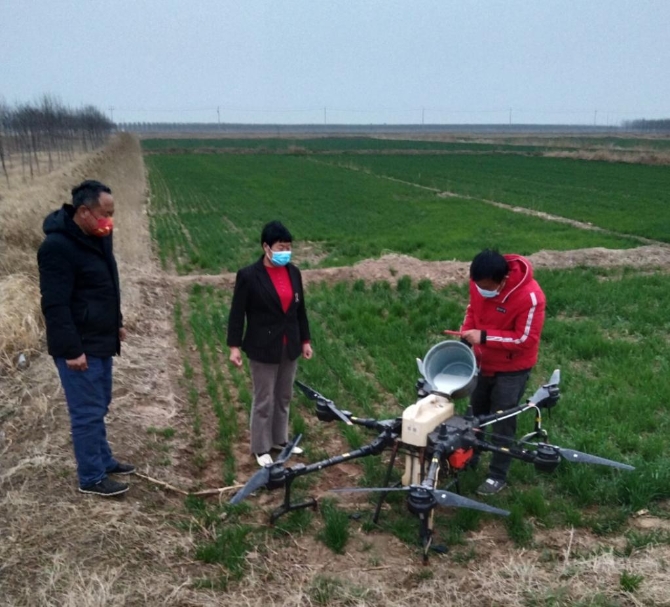 如何不耽誤農(nóng)時(shí),成了村里的大事。在北賈村,由村集體出資,雇無(wú)人機(jī)免費(fèi)為全村小麥統(tǒng)一噴灑農(nóng)藥,統(tǒng)一田間管理。