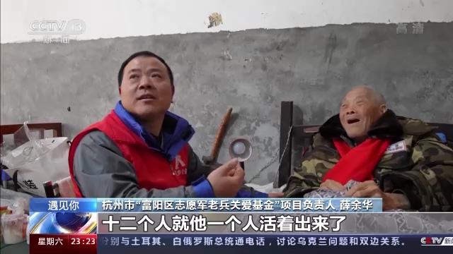 杭州市“富陽區(qū)志愿軍老兵關(guān)愛基金”項目的負責人 薛余華:自己也是一名退伍軍人,盡管我們脫掉軍裝了,但是其實每一個退役軍人身上還留著那份軍魂。當時我們抱定一種觀念,健在的老兵一個不能少,都要讓他們上(照片),今天這個日子是他們用生命和鮮血換來的,珍惜當下的和平。