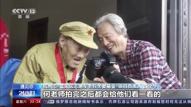 杭州市“富陽區(qū)志愿軍老兵關(guān)愛基金”項目負責人 薛余華:他是坐在輪椅上的,何老師拍完之后都會給他們看一看的,他就一個勁兒地笑,說好的好的。