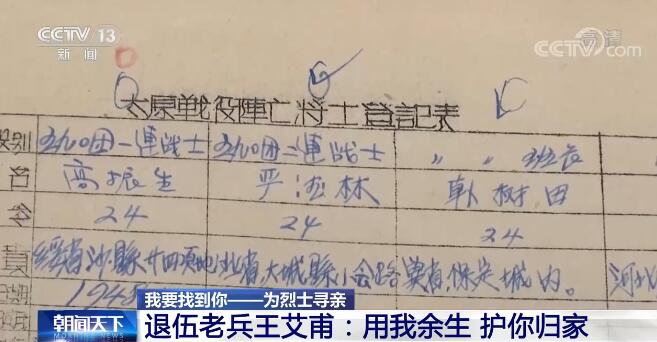 清明節(jié)是思念親人、祭奠英烈的日子。目前,全國有196萬余名登記在冊的烈士,由于種種原因,一些烈士信息不夠完整準(zhǔn)確,一些烈屬只知親人犧牲,卻不了解詳細(xì)信息,不知其安葬的地址,更無從現(xiàn)場祭奠,為了讓這些英雄能夠魂歸故里,很多人都在為他們尋找回家之路。今天(4月3日)的“我要找到你——為烈士尋親”系列節(jié)目,我們來講述退伍老兵王艾甫堅(jiān)持20多年為陣亡烈士尋找親人的故事。